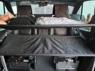 Turn the cab into bunks! Much like sleeping on a camping cot. Each bunk fits an adult or child up to 5’7” stretched out and 155lbs.
